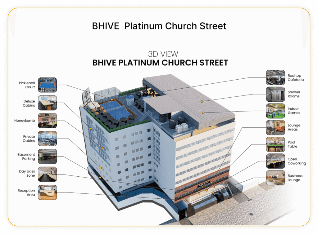 - At BHIVE Platinum Church Street, Bengaluru, we redefine coworking spaces with Grade-A infrastructure, flexible seating options, and workspaces designed to support teams as they grow.